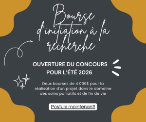 📣 Étudiantes et étudiants du premier cycle, le concours de la Bourse d’initiation à la recherche en soins palliatifs et de fin de vie s’ouvre dès demain.